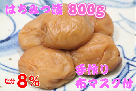 紀州南高梅 はちみつ漬 800g(800g×1)塩分8%手作り立体布マスク1枚おまけ付き 梅干し 梅干 梅 農家の梅 はちみつ梅 減塩梅 南高梅 はちみつ梅干し 蜂蜜梅 蜂蜜梅干し 紀州南高梅 紀州梅干し うす塩梅 うす塩梅干し 減塩梅干し マスク 布マスク 立体マスク